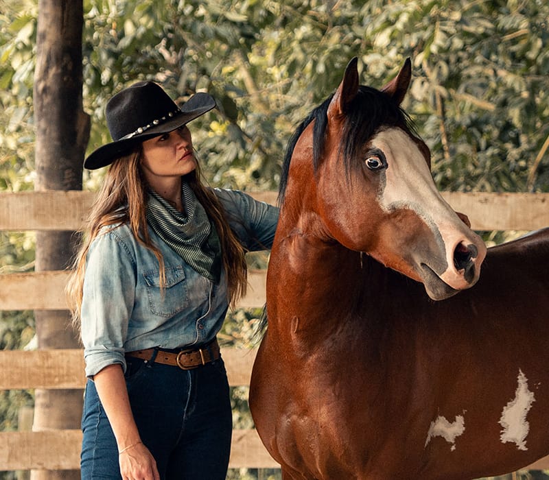 Mais de 15 anos de vivência em comportamento e comunicação equina, iniciando sua trajetória treinando um potro desde os 12 anos.